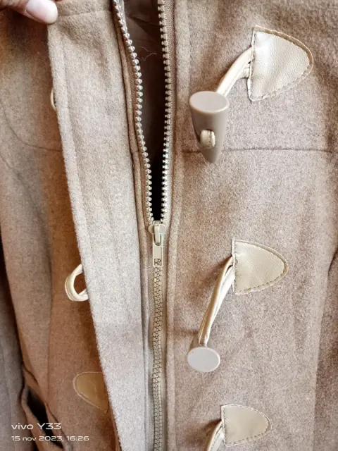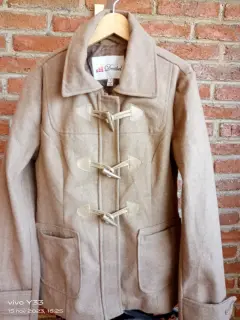 Lindo abrigo color arena talla mediano, con cierre y botones, está súper bello trae bolsas