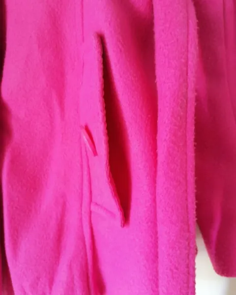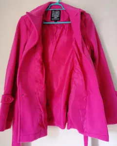Abrigo rosa con botones, se le puede quitar la cinta, bolsas al costadoPecho: 100cmLargo: 65cmLargo manga: 60cm