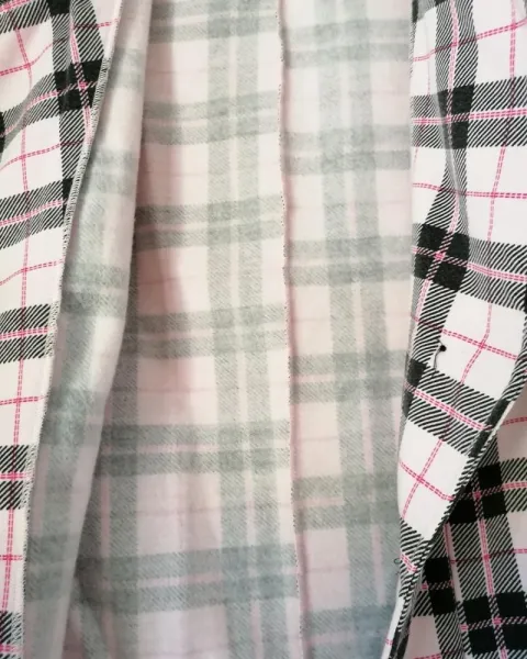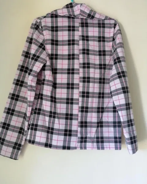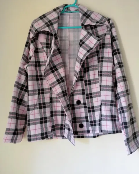 Lindo abrigo tela a cuadros, con 3 botones frontales, no tiene bolsas y por dentro es un poco afelpadoPecho: 100cmLargo: 60cmLargo manga: 64cm