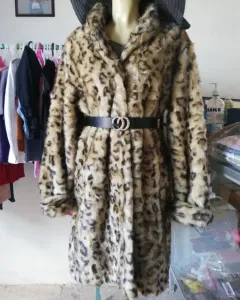 Abrigo fur animal print. Talla L, sin detalles, forro negro, bolsillos muy lindo y combinable, no incluye cinturón lo agregue para dar idea de como personalizar