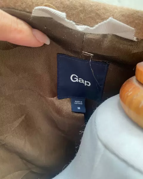 Abrigo GAP color caqui. Medias de hombro a hombro 44cm, axila axila 54cm, largo desde el hombro 94cm, sin detalles de consideración solo en la foto 5 muestro que llevaba un cinto y se lo quite, (ya no lo conservo)