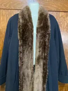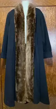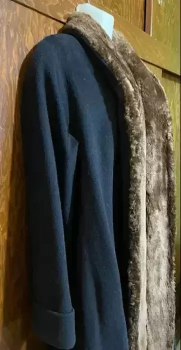 Elegante abrigo negro de lana, grueso, largo, con peluche al frente.. en excelentes condiciones, sin detalle talla M-L