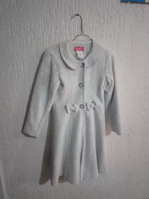Abrigo largo - kids. Es un abrigo largo, en color gris claro, de algodón, en línea A, da muy bonita forma, es talla 12, tiene tres botones, ideal para la temporada invernal, mide 92 cms de largo