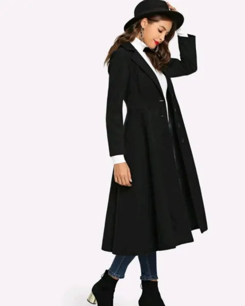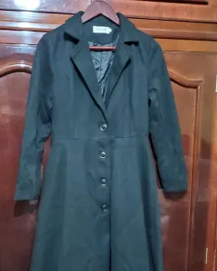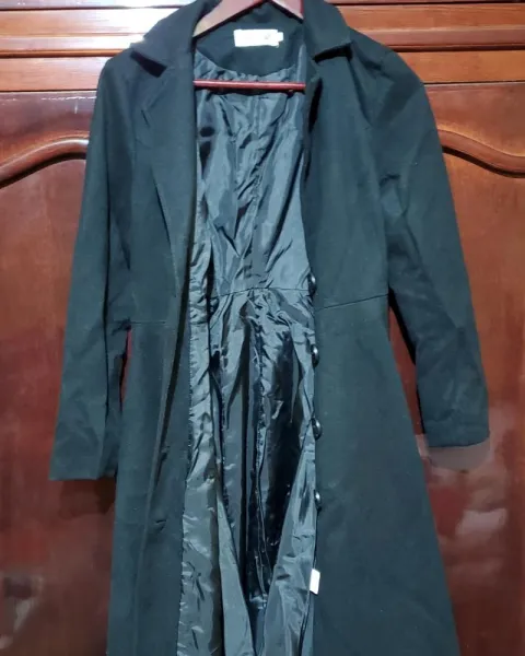 Abrigo nuevo largo, con forro y botones. Aunque la talla dice L es M, esta reducido en en la espalda.