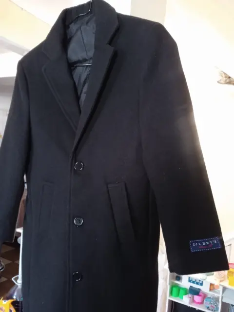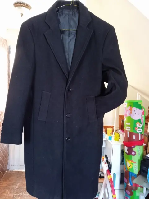 Precioso abrigo negro de niño, tela suave al tacto, largo, disponible en talla 10 y 16, una sola puesta.