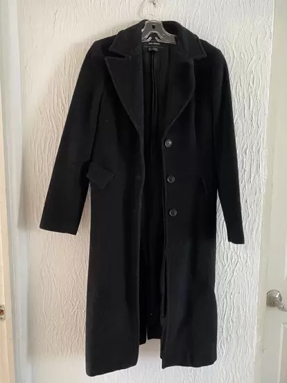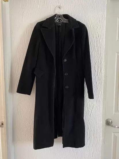 Abrigo negro de lana Zara, talla chica. MuyBonito , atemporal y súper combinable! También muy calientito.40 cms hombro a hombro 47 axila a axila 109 largoLe hace falta tintorería y descosido de axila, se puede arreglar.