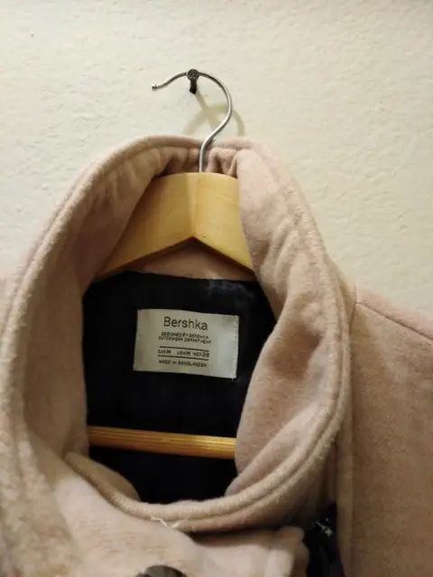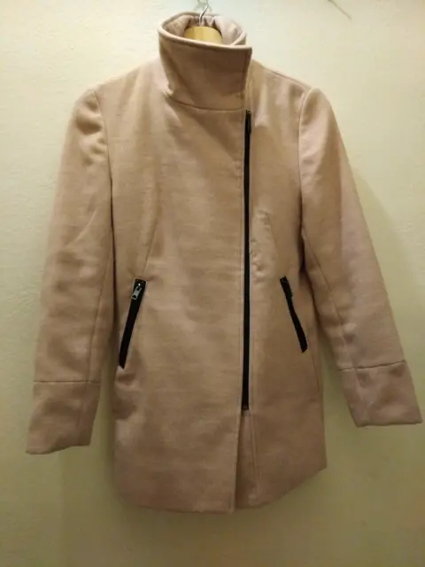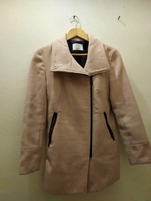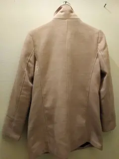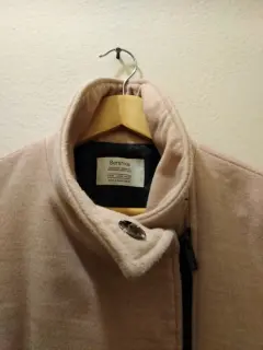 Marca Bershka. Abrigo rosa pastel talla 28, semi nuevo (4 puestas) con cierre al frente, bolsillos con cierre a los costados, botón en cuello alto