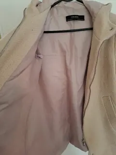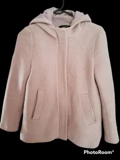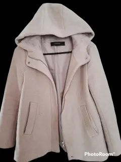 Hermoso abrigo rosado Zara Basics con gorra y bolsas para manos.Muy poco uso, ningun detalle.Tiene forro por dentro, es grueso, sirve para los tiempos frios tmb.Es corto, llega a la cintura aprox.