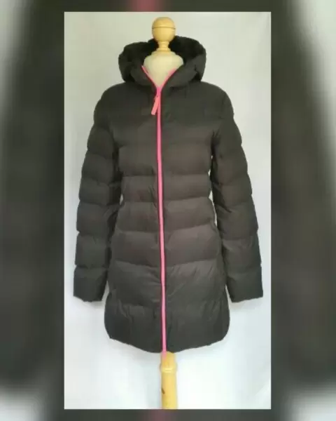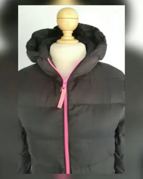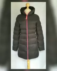 Abrigo térmico estilo puffy color NEGRO ÉBANO, cuello Perkins, capucha integrada NO DESMONTABLE, cierre p/cremallera tono FUCSIA en contraste, 2 bolsos vivo frontales y forro interior. Talla XL (REDUCIDA, da mejor a L). Dimensiones cms: 41 hombro, 52 axila, 47 cintura, 59 zona baja, 79 largo, 65 largo manga. 100% poliéster. P/lavado en casa.***TOTALMENTE EMPACABLE, CUENTA C/SU BOLSA P/GUARDAR***
