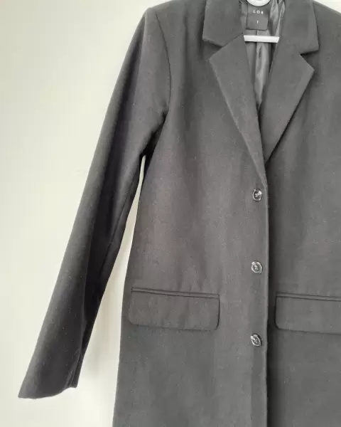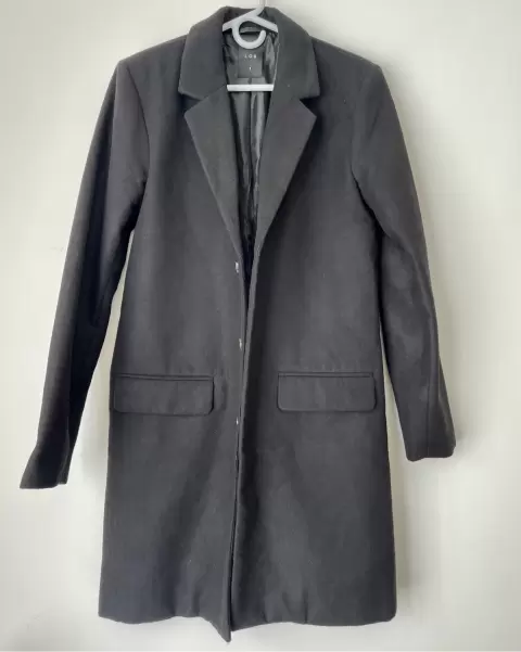 Abrigo unisex negro. Abrigo muy cómodo, solo se usó una vez no tienen ningún detalle. Su talla es 1 da de una talla chica a una mediana.