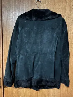 Hermoso abrigo de gamuza. Negro, talla grande, en perfecto estado, súper práctico, y muy suave.