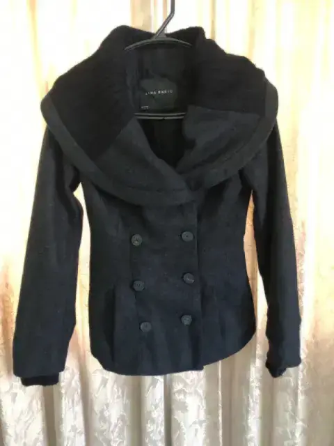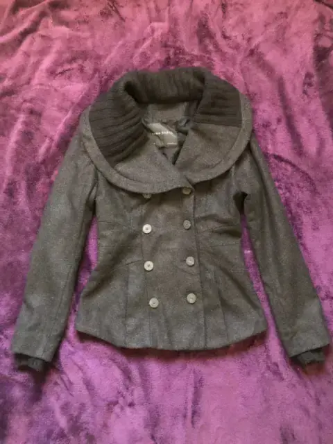 Abrigo Zara. Abrigo Zara confeccionado en lana, color gris oscuro, forrado a tono con la tela.