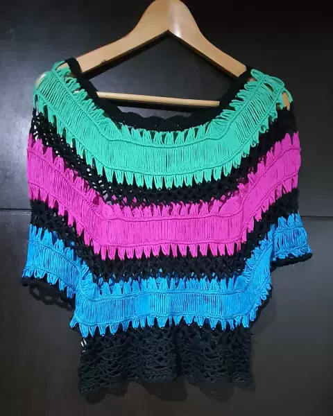 Capa de hilos multicolor. Hermosa capa (blusita) en colores fuerte, talla M, nueva sin etiqueta, no tiene ningun detalle.