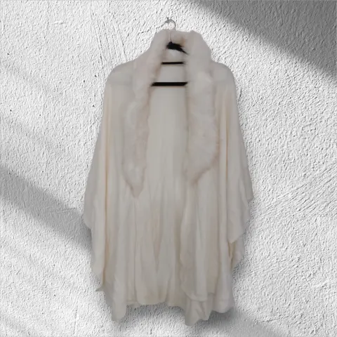 Capa hermosa color beige con cuello de pelos ideal para cualquier ocasión, muy elegante