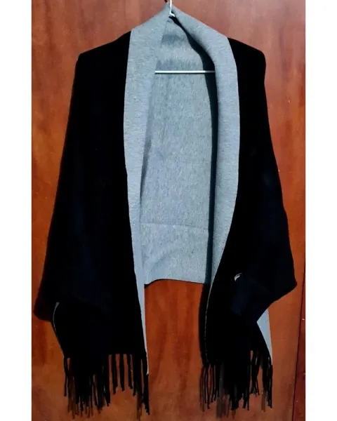 Capa mañanita poncho elegante negro. Hermosa y abrigadora capa mañanita poncho elegante, tejido de punto, strech, calientita. Color negro, forro gris, súper cómoda y fácil de llevar, su tejido suave al tacto la hace atemporal, su corte holgado se ajusta a todas las tallas y es mu favorecedor. 100% unitalla. Pd. Si te interesan más productos de mi closet, escríbeme y con gusto te armo un gran kit a muy buen precio 🤑