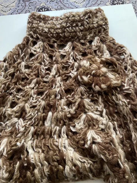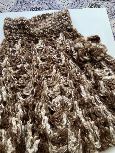 Capa tejida a mano. Artesanal hecha a mano linda y muy cálida uni talla bicolor café con beige