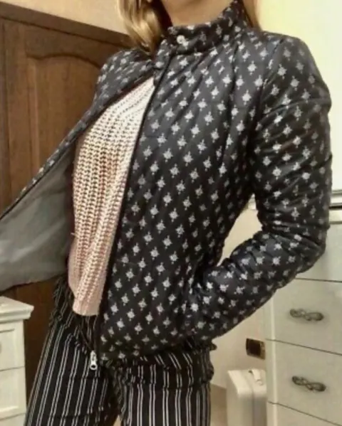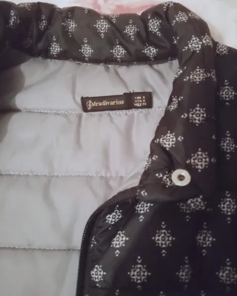 Cazadora negra con diseños blancos. Cazadora súper calientita con resorte en mangas y cintura. Excelente para protegerte de las lluvias y el frío.