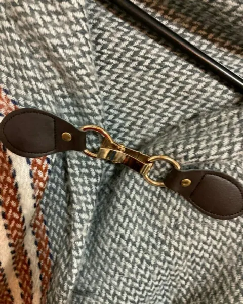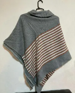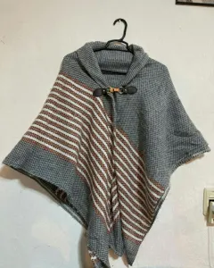 Chal artesanal. Chal artesanal de lana, broche al frente Sin mangas