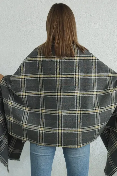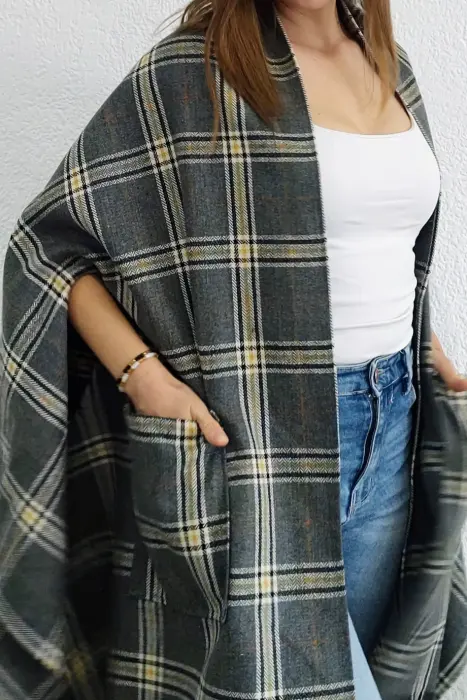 Chal gris cuadros. NUEVA, totalmente deliciosa para estos fríos, ruana gigante textura lana!Es calientita, muy calientita, abrigadora. Tipo chaleco con bolsillos. Te va a encantar; con todas las combinaciones la podrás usar.