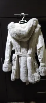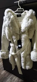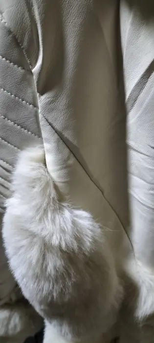 Chamarra larga beige. Linda chamarra de vinipiel con peluche trae forro de borreguita súper calientita