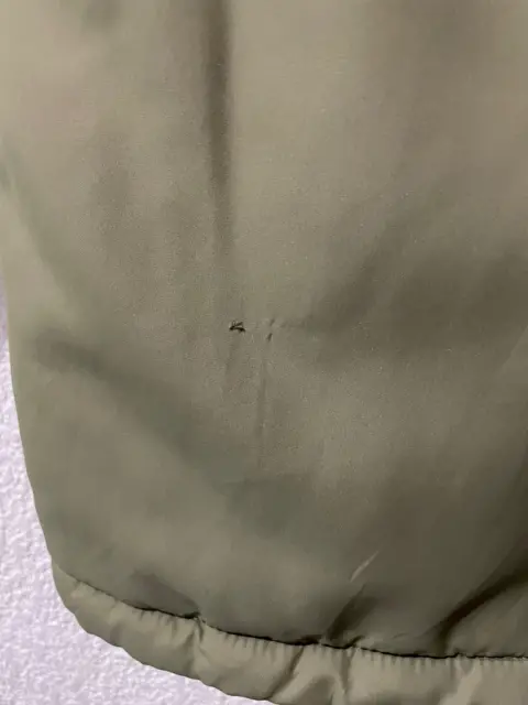 Chamarra tipo cazadora verde soldado. Linda y muy calientita chamarra tipo cazadora con forro tipo borrega, color verde soldado. Viene con gorro, cierre y broches que funcionan perfectamente.Tiene un detalle en la parte posterior que viene marcada en las últimas dos fotos