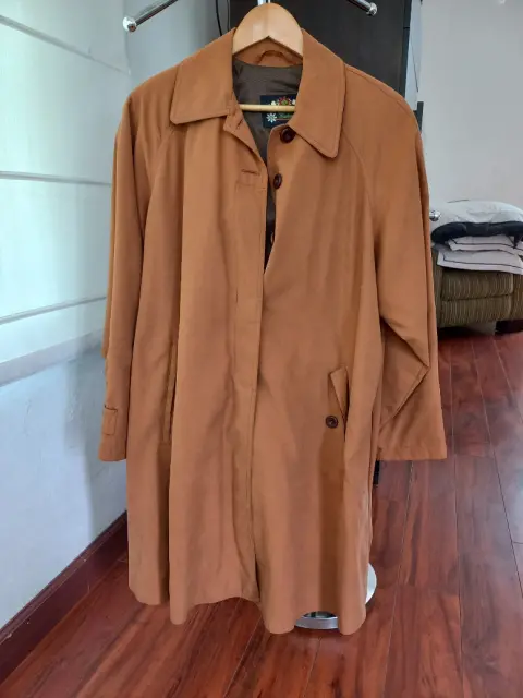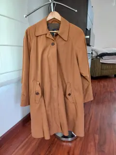 Chaqueta café tipo abrigo, linea A, de gamuza. Ideal para el clima de México, ya que pueden utilizarse en época de extremo frío o ligero.