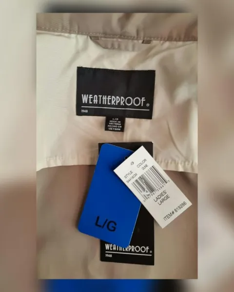 Chubasquero Weatherproof tono Hazel Wood. Chubasquero weatherproof color HAZEL WOOD, manga larga acabada en puño c/tira c/snap convertible a 3/4, cierre p/cremallera cubierta p/tapeta c/snaps, jareta en cintura p/mejor ajuste, cuello Perkins, capucha NO DESMENTABLE y oculta en cuello, 2 bolsillos plastrón frontales c/tapeta c/snap y tira y forro interior. Talla L. Dimensiones cms: 43 hombro, 55 axila, 51 cintura, 59 zona baja, 71 largo 62 largo manga. 100% poliéster. Para lavado en casa.***EL TONO EXACTO ESTÁ EN LA FOTO NÚM 5***ES LIGERAMENTE IMPERMEABLE***