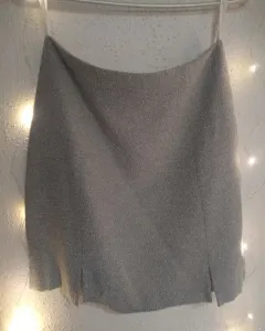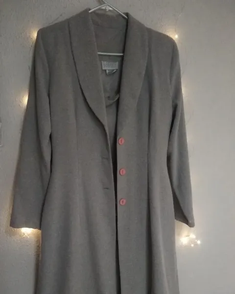 Falda y abrigo. ⭐ lindo duo de falda con abrigo largo en tono gris y botones rosas, falda entallada mini a la cintura ⭐