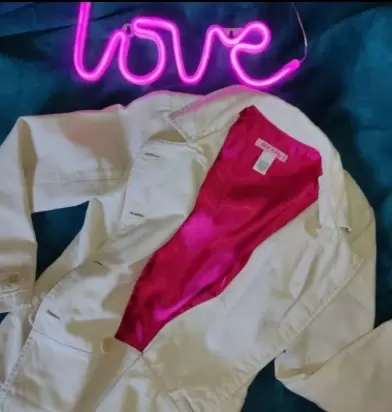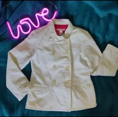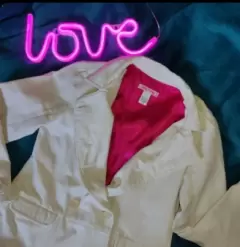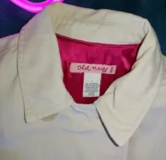 Hermosa gabardina en color beige con interior fiusha dice marca L pero la verdad es marca chica, yo soy mediana y no me cerró.Hombros 37 cmBusto 86 cmLargo 55 cmLargo de manga 53 cm100% algodón.