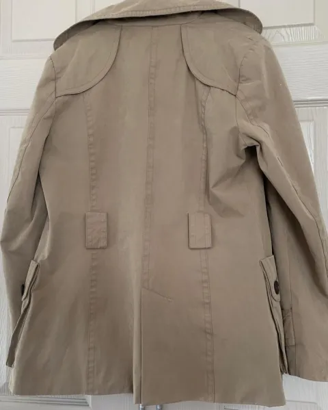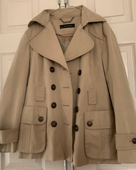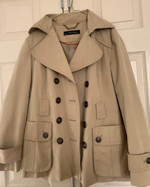Gabardina café Zara REMATE. No tiene ningún imperfecto, la talla viene fiel, calidad excelente, tiene detalles sin imperfecciones pero la cinta se extravió