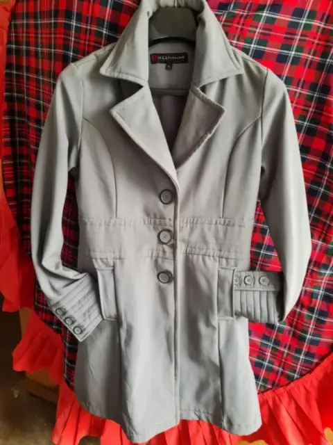 Gabardina Gris. Gabardina grisTalla LColor gris Con botones en pisos y bolsasAjusta bien Corte largo