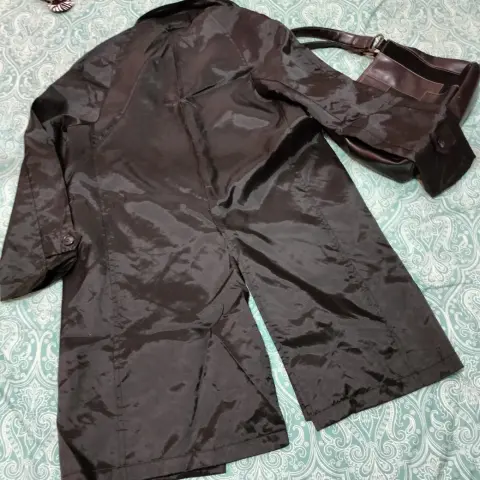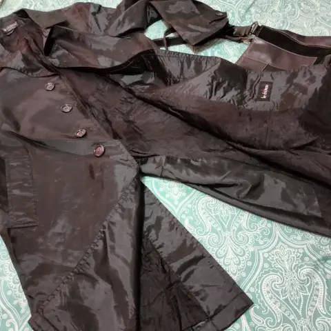 Gabardina larga unitalla Negra. Gabardina con forro de tela ligera, hecha en CANADÁ, bolsos laterales amplios, 4 botones se ocultan al abrochar, abertura parte trasera, es perfecta para temporada de lluvia y más.