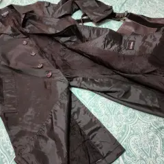 Gabardina con forro de tela ligera, hecha en CANADÁ, bolsos laterales amplios, 4 botones se ocultan al abrochar, abertura parte trasera, es perfecta para temporada de lluvia y más.