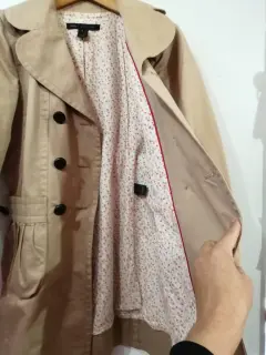 Linda gabardina de corte clásico, en perfectas condiciones , con botones de madera, talla s
