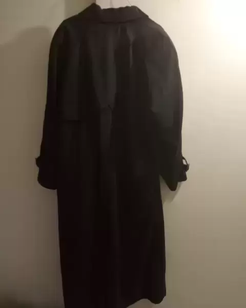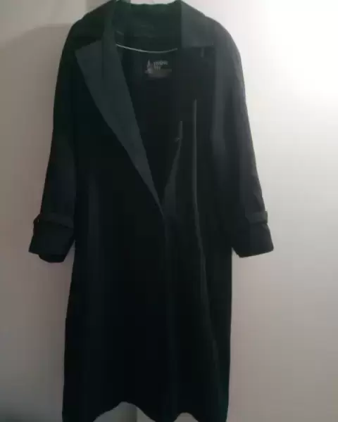 Gabardina color negro, talla mediana, 1.21cm de largo, marca london fog, usada en buen estado.
