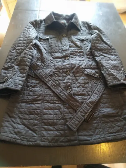 Gabardina color negro de botones 4 bolsas al frente altura 88 CMS, cintura 96 CMS con cinta de amarre.