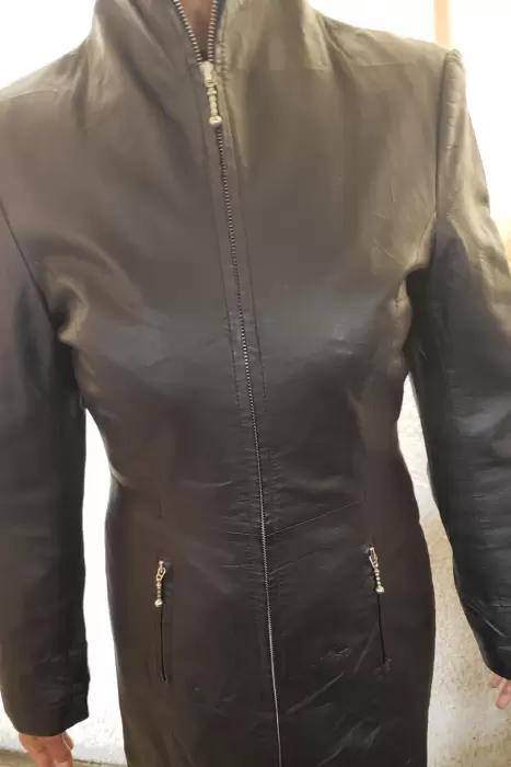 Gabardina Negra. Gabardina Negra 100% Foro de cuero Marca NEWPORT NEWSMedida 45 cm de EspaldaCintura 39 cmen perfecto estado