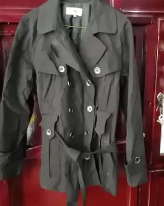Gabardina negra, talla 30. En excelentes condiciones! La use una vez, le falta un boto, te mando el respuesto y tiene una pequeña mancha que en tintoreria se quita!! Precio a tratar... 😌