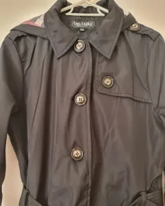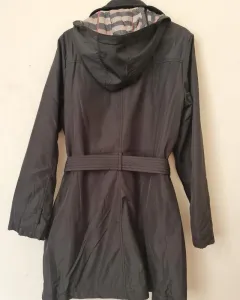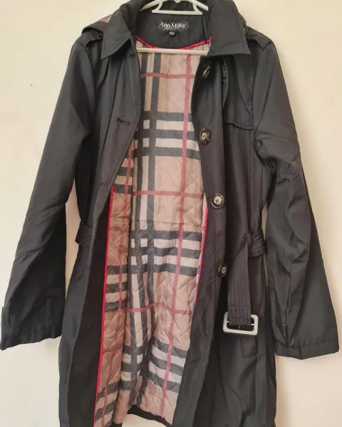 GABARDINA NEGRA!!CON GORRO CALIENTITA. HERMOSA CHAMARRA GABARDINA BONITO CORTE Y HORMA!!/TELA SINTETICA VIENE CON FORRO INTERNO!! ES CALIENTITA!! MIDE:57cm busto X 91cm largo/QUEDA A TALLAS:9,11!!/CHECA LAS MEDIDAS!Incluye cinturon y gorro!!Minimo detalle de descosido en manguita derecha casi imperceptible,ya que se le quitaron unas cintas anteriormente pero no se notan para nada!!! LISTA PARA QUE LA USES!!