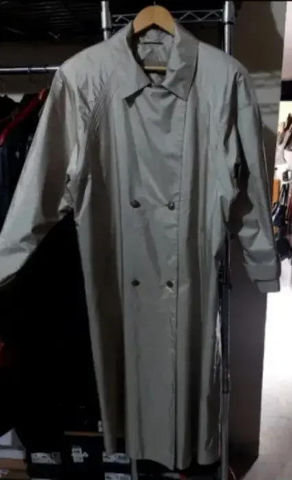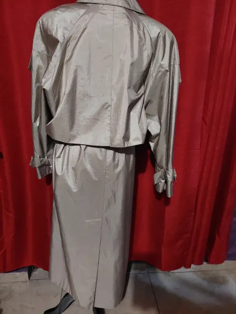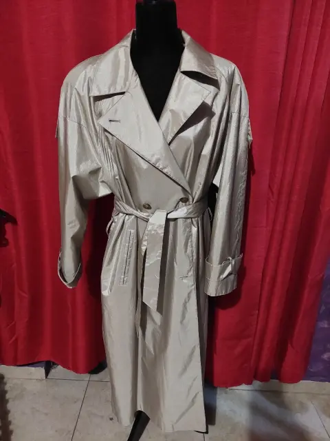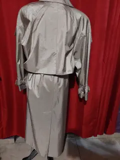 Gabardina Vintage. Gabardina brillosa ,muy hermosa talla 14, 2XL, en excelente estado, ningún detalle, se le cayó un botón de la manga ,pero tiene repuesto, de largo tiene 122 cm.