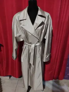 Gabardina brillosa ,muy hermosa talla 14, 2XL, en excelente estado, ningún detalle, se le cayó un botón de la manga ,pero tiene repuesto, de largo tiene 122 cm.