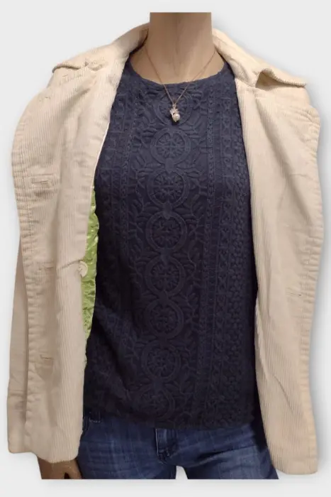 GAP Abrigo Dama Algodón Beige MAbrigo marca GAP exterior 100% AlgodónMarca: GAP Origen: IndiaMaterial: 100% Algodón interior 100% PoliésterTalla: MEstilo: AbrigoPatrón: FormalColor: BeigeCierre: BotónPecho: 49 cmLargo: 65 cmHombro: 38 cmManga: 62 cmRopa de USO en muy buen estado