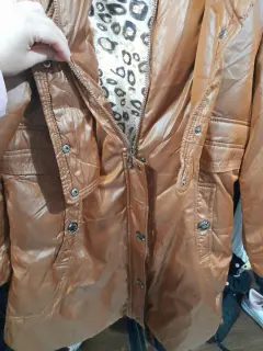 Chamarra tipo cazadora color camel satinado, es gruesa y muy calientita. Talla M. Seminieva en perfecto estado.