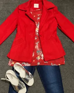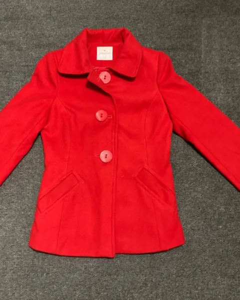 Hermoso abrigo, corto, ideal para otoño e invierno, cómodo, en perfecto estado, muy combinable en color rojo encendido.