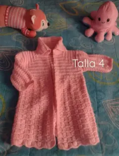 Lindo abrigo tejido súper calientito, no tiene ningún detalle, talla 4 la manga es a 3/4 está hermosísimo