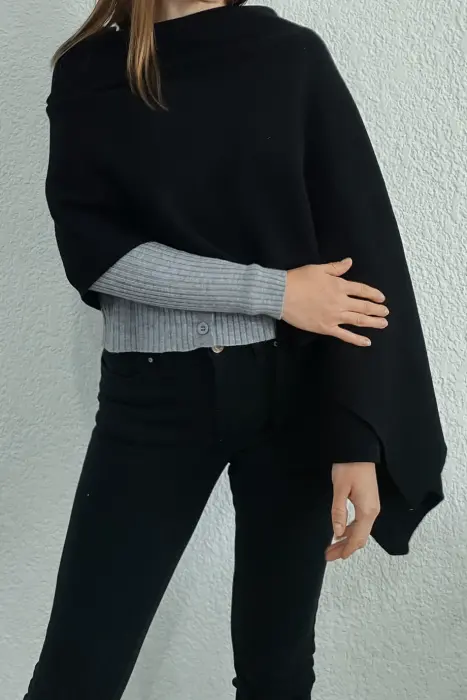 Ponchito multiformas color negroDeliciosa textura suavecita, tipo durazno, 100% finísima viscosaEs calientito, muy vestidorÚsalo de varias formas, te va a encantarIdeal para estrenar o regalarDisponible en beige, mostaza y negro