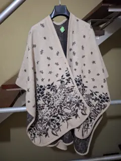 Poncho color capuchino con estampado en café, ligera composición 80%algodón 20%lana,abrigadora