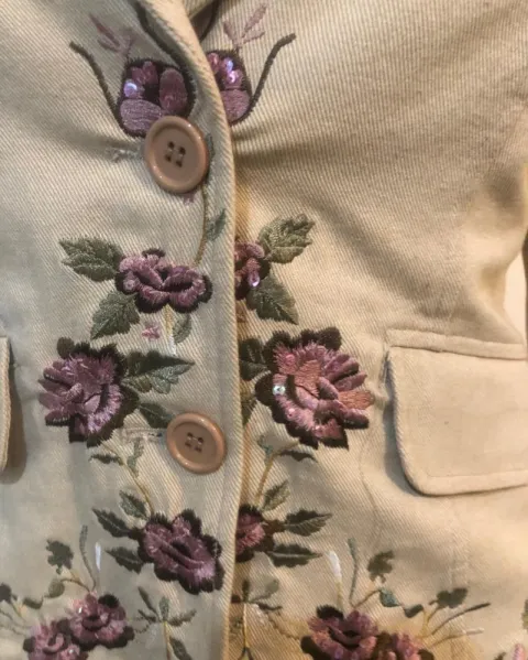 Saco Bordado. Hermosos saco bordas, tiene marchitas de estar guardado, nunca se uso, tiene forro y bolsitas,