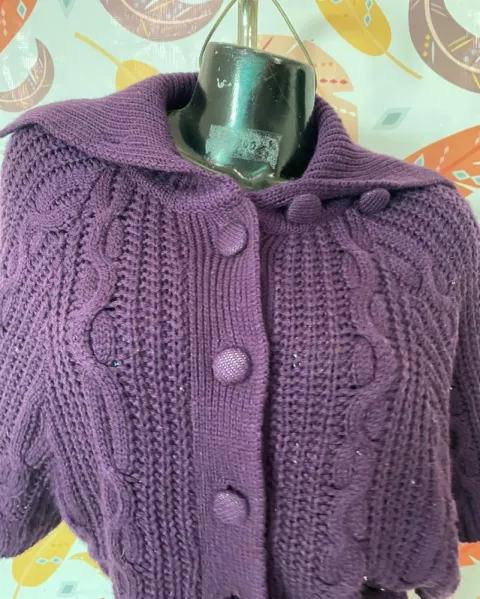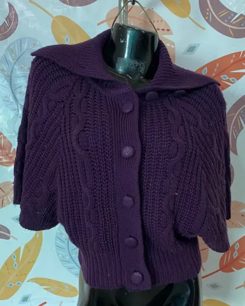 Saco cortito de tejido morado, manga ancha, 3/4’s, el tejido estira, tiene una leve descocida en la parte de atrás de cuello, botones completos, muy lindo y calientito. ☑️ Acepto ofertas razonables.☑️Armo paquetes. ☑️Envío lo más pronto posible en materiales reciclados. ♻️☑️💞Checa mi Closet y dale otra oportunidad a Lindas Prendas!! 💞