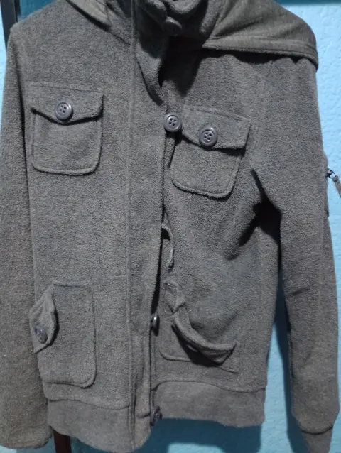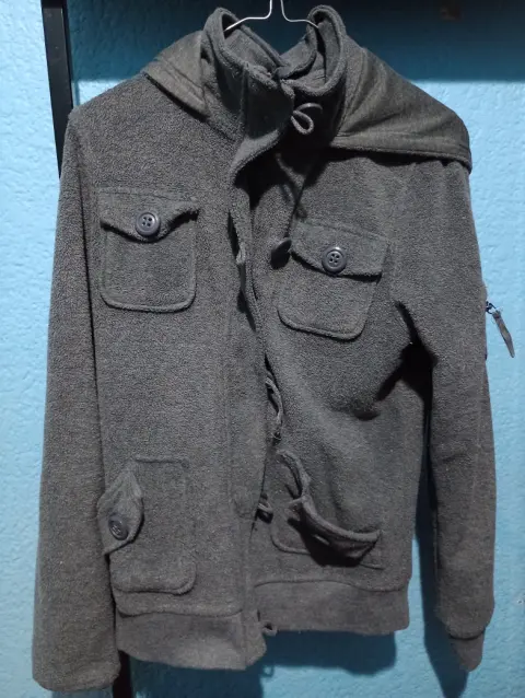 Sudadera con capucha. ✨solo donde va uno de los botones está descosido pero cierra bien la prenda, ya incluye su cierre ✨Muy calientita ✨Usado✨Talla G (queda a M Y S)✨incluye bolsillos📏 Medidas: 46cm (ancho hombro a hombro) X 73cm de largoPecho: 45cmMangas: 61cm largo X 17 (ancho de muñecas)Envío inmediato. ☺️Recuerde que también puedo hacerle un paquete de los productos que más le hayan gustado de mi perfil y que desee comprar. 😸📦¡Gracias! ☀️